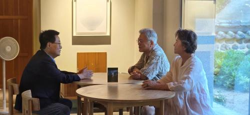 ¹®ÀçÀÎ Á¤ºÎ ±¹Á¤¿øÀåÀ¸·Î¼ ±ä¹ÐÇÑ °ü°è¸¦ À¯ÁöÇØ ¿Â ¹ÚÁö¿ø ±¹È¸ÀÇ¿øµµ 2ÀÏ ¹® Àü ´ëÅë·É ³»¿Ü¿Í Á¶ÂùÀ» ÇÔ²²Çϸç ÇØ³² ¹æ¹® ¼Òȸ¸¦ ³ª´©±âµµ Çß´Ù.