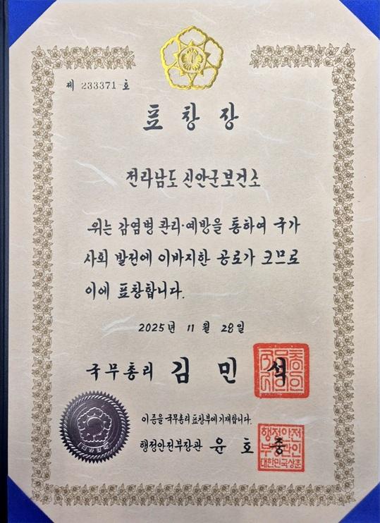 ½Å¾È±º, °¨¿°º´ ¿¹¹æ°ü¸® ¿ì¼ö ÁöÀÚü ¼±Á¤ ±¹¹«ÃѸ®»ó ¼ö»ó -