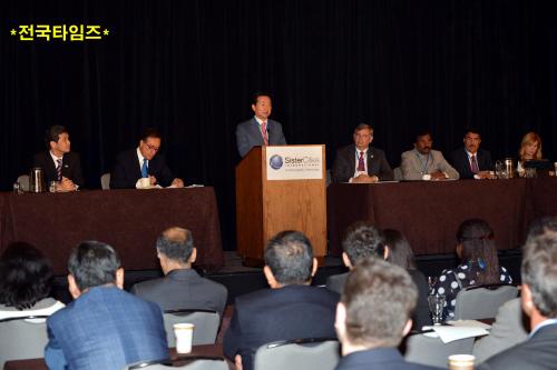 °¿îÅ ±¤ÁÖ±¤¿ª½ÃÀåÀº 12ÀÏ ¿ÀÀü »÷¾ÈÅä´Ï¿À ÇÏ¾æÆ® ¸®Á¨½ÃÈ£ÅÚ¿¡¼ ¿¸° UEA-SCI Àüü °³È¸½Ä¿¡ Âü¼®ÇÏ¿© Ãà»ç¸¦ Çß´Ù.