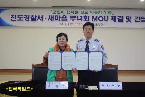 Áøµµ°æÂû¼(¼Àå ¹Ú±ÙÁÖ)´Â Áøµµ±º »õ¸¶À»ºÎ³àȸ(ȸÀå Á¶±Í½É)¿Í 2014. 1. 9. 14:00 Áøµµ°æÂû¼ 4Ãþ º¸¹è¸¶·ç¿¡¼ ¾÷¹«Çù¾à(MOU)À» ü°áÇϰí È¿À²Àû ¹üÁË´ëÀÀ ÁֹΠ´«³ôÀÌ Ä¡¾È È®¸³À» À§ÇØ »õ¸¶À» ºÎ³àȸ¿øÀ» ¹üÁË¿¹¹æ ¼øÂû ¹× ½Å°í¿ä¿øÀ¸·Î Ȱ¿ë Áö¿ª»çȸ ¾ÈÀü¸Á ±¸ÃàÇϱâ·Î ±ä¹ÐÈ÷ ÇùÁ¶Çϱâ·Î ÇÏ¿´´Ù.