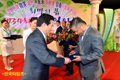 ¾ÖÀÎ, °¡Á·, ÀÚ¿øºÀ»çÀÚ, ½Ã¹Î µî 2000¿© ¸íÀÌ Âü¿©ÇÑ °¡¿îµ¥ ±â³äÇà»ç¸¦ ¿°í Àå¾ÖÀκ¹ÁöÁõÁø¿¡ ±â¿©ÇÑ °ø·Î·Î (ÁÖ)µð¾ÆÁö¿ÀÄÚ¸®¾Æ È«µ¿Èñ °úÀå µî 6¸í¿¡°Ô ǥâÀ» ¼ö¿©Çß´Ù.