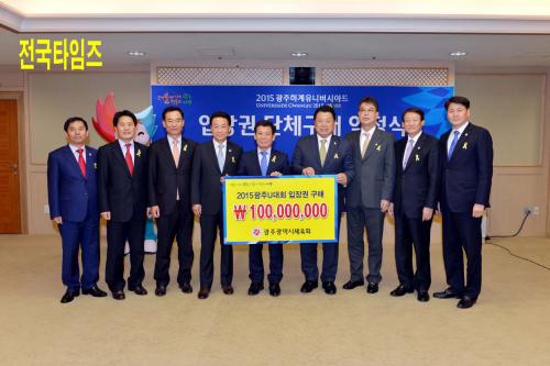 À±ÀåÇö 2015±¤ÁÖÇϰèÀ¯´Ï¹ö½Ã¾Æµå Á¶Á÷À§¿øÀåÀº 13ÀÏ ¿ÀÈÄ ½Ãû 3Ãþ ºñÁî´Ï½º·ë¿¡¼ À¯Àç½Å ½ÃüÀ°È¸ »óÀÓºÎȸÀå°ú U´ëȸ ÀÔÀå±Ç ´Üü±¸¸Å ¾àÁ¤À» ü°áÇß´Ù.