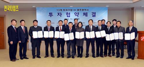 À±ÀåÇö ±¤ÁÖ±¤¿ª½ÃÀåÀº 21ÀÏ ¿ÀÈÄ ½Ãû 3Ãþ ºñÁî´Ï½º·ë¿¡¼ Çѱ¹»ó¿ëÆ®·°(ÁÖ), (ÁÖ)´ë´ö¾ÆÀÌ¿¥Æ¼ µî 13°³ ±â¾÷°ú ÅõÀÚ¾× 912¾ï¿ø, °í¿ë 492¸íÀ» âÃâÇÏ´Â ³»¿ëÀÇ ÅõÀÚÇù¾àÀ» ü°áÇÏ°í ±â³ä ÃÔ¿µÀ» Çϰí ÀÖ´Ù.