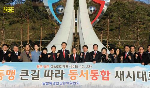 À±ÀåÇö ±¤ÁÖ±¤¿ª½ÃÀåÀº 22ÀÏ ¿ÀÈÄ ÇÔ¾ç»ê»ï°ñÈÞ°Ô¼Ò(±¤ÁÖ ¹æ¸é)¿¡¼ ±¤ÁÖ-´ë±¸ °í¼Óµµ·Î °³ÅëÀ» ±â³äÇÏ¸ç ´Þºûµ¿¸Í¹Î°üÇù·ÂÀ§¿øÈ¸ À§¿ø, °³Åë½Ä Âü¼®ÀÚµé°ú ÇÔ²² ±â³äž¡®ÈÇÕ°ú µµ¾àÀÇ ±æ¡¯¾Õ¿¡¼ ÆÄÀÌÆÃÀ» ¿ÜÄ¡°í ÀÖ´Ù.