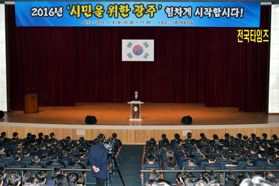 À±ÀåÇö ±¤ÁÖ±¤¿ª½ÃÀåÀº 4ÀÏ ¿ÀÀü ½Ãû 3Ãþ ´ëȸÀǽǿ¡¼ ¿¸° 2016³â ½Ã¹«½Ä¿¡ Âü¼®ÇØ Èļյ鿡°Ô ¹°·ÁÁÙ ³Ë³ËÇÏ°í µû¶æÇÏ¸ç ´ç´çÇÑ ±¤ÁÖ °Ç¼³À» À§ÇØ ¿Ã ÇÑÇØµµ °øÁ÷ÀÚµéÀÇ ¿Á¤°ú Çå½ÅÀ» ´çºÎÇϰí ÀÖ´Ù.