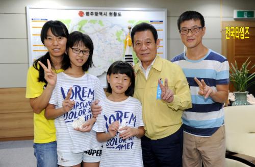 À±ÀåÇö ±¤ÁÖ±¤¿ª½ÃÀåÀÌ 23ÀÏ ¿ÀÈÄ ½Ãû 3Ãþ Áý¹«½Ç¿¡¼ ½Ã¿Í ±ÝȣŸÀ̾ °øµ¿ °³ÃÖÇÑ Èñ¸Áµå¸² ÄܼƮ¸¦ °ü¶÷ÇÏ°í °¨»çÆíÁö¸¦ Àü´Þ