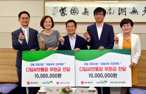 À±ÀåÇö ±¤ÁÖ±¤¿ª½ÃÀåÀÌ ¢ß±¤Áֽż¼°è(´ëÇ¥ÀÌ»ç ÀÓÈÆ)¿Í ÃÊ·Ï¿ì»ê¾î¸°ÀÌÀç´Ü ±¤ÁÖÁö¿ªº»ºÎ(º»ºÎÀå ±èÀº¿µ)À¸·ÎºÎÅÍ ¡®Èñ¸Á¾¾¾ÑÇÁ·ÎÁ§Æ®¡¯ ÈÄ¿ø±Ý 2000¸¸¿øÀ» Àü´Þ¹Þ°í ÀÖ´Ù.