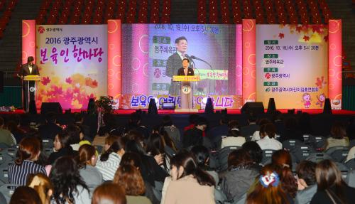 À±ÀåÇö ±¤ÁÖ±¤¿ª½ÃÀåÀÌ 19ÀÏ ¿ÀÈÄ ¼±¸ ¿°ÁÖüÀ°°ü¿¡¼ ¿¸° 2016 ±¤ÁÖ±¤¿ª½Ã º¸À°ÀÎ ÇѸ¶´ç Çà»ç¿¡ Âü¼®