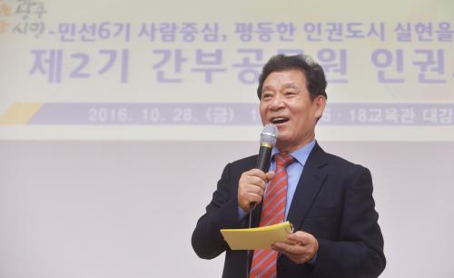 À±ÀåÇö ±¤ÁÖ±¤¿ª½ÃÀåÀÌ 28ÀÏ ¿ÀÈÄ ¼±¸ Ä¡Æòµ¿ 5¡¤18±³À°°ü ´ë°Àǽǿ¡¼ ¿¸° 2016³â Á¦2±â °£ºÎ°ø¹«¿ø ÀαDZ³À°¿¡ Âü¼®ÇØ ¡®ÀαÇÀû Á¶Á÷¹®ÈÀÇ Èû¡¯À» ÁÖÁ¦·Î Ư°À» Çϰí ÀÖ´Ù.