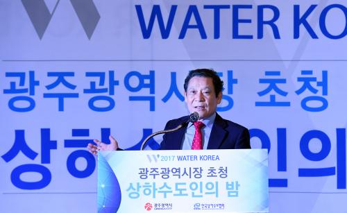 À±ÀåÇö ±¤ÁÖ±¤¿ª½ÃÀåÀÌ 21ÀÏ ¿ÀÈÄ ¼±¸ Ȧ¸®µ¥ÀÌÀÎ ±¤ÁÖÈ£ÅÚ 3Ãþ ´ÙÀ̳ʽºÆ¼È¦¿¡¼ ¿¸° 2017 ¿öÅÍÄÚ¸®¾Æ(±¹Á¦ ¹°»ê¾÷ Á¾ÇÕ¹Ú¶÷ȸ) ±¤ÁÖ½ÃÀå ÃÊû »óÇϼöµµÀÎÀÇ ¹ã ¸®¼Á¼Ç Çà»ç¿¡ Âü¼®ÇØ Àλ縻À» Çϰí ÀÖ´Ù.