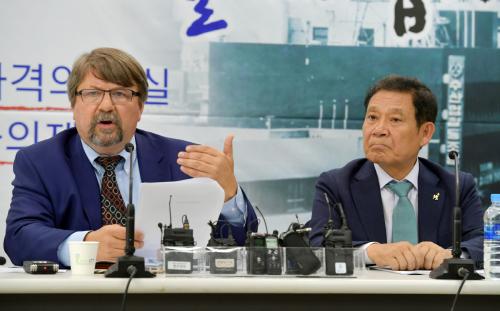À±ÀåÇö ±¤ÁÖ±¤¿ª½ÃÀå(»çÁø ¿À¸¥ÂÊ)ÀÌ 24ÀÏ ¿ÀÈÄ ½Ãû 5Ãþ ºê¸®Çη뿡¼ ¿¸° ¹Ì±¹ Á¤ºÎÀÇ 5¡¤18¹ÎÁÖȿ ±â¹Ð¹®¼¸¦ °ø°³ÇÑ ¹Ì±¹ Àú³Î¸®½ºÆ® ÆÀ ¼Å·Ï(66)ÀÇ ¡®1979~1980³â ¹Ì±¹ Á¤ºÎ ±â¹Ð¹®¼ ¿¬±¸ °á°ú ¼³¸íȸ¡¯¿¡ Âü¼®ÇØ 5¡¤18 ±â¹Ð¹®¼¿¡ ´ëÇÑ ¼³¸íÀ» µè°í ÀÖ´Ù./±¤ÁÖ±¤¿ª½Ã Á¦°ø