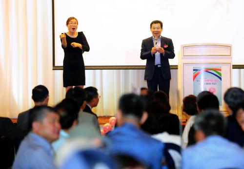 À±ÀåÇö ±¤ÁÖ±¤¿ª½ÃÀåÀÌ 21ÀÏ ¿ÀÈÄ »ó¹«¸®Ã÷ ÄÁº¥¼Ç¿þµùȦ¿¡¼ ¿¸° ¡®Á¦2ȸ ³ó¾ÆÀÎÀÇ ³¯ ±â³äÇà»ç¡¯¿¡¼ Âü¼®ÀÚµé°ú Àλ縦 ³ª´©°í ÀÖ´Ù