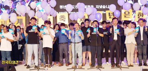 À±ÀåÇö ±¤ÁÖ±¤¿ª½ÃÀåÀÌ 4ÀÏ ¿ÀÈÄ µ¿±¸ ±Ý³²·Î 5¡¤18¹ÎÁÖ±¤Àå¿¡¼ ¿¸° 2017 ¼¼°èû³âÃàÁ¦ °³¸·½Ä¿¡ Âü¼®ÇØ Ã»³âµé°ú ÇÔ²² '¼¼°èû³â³×Æ®¿öÅ© ±¤ÁÖ¼±¾ð¹®'À» ³¶µ¶Çϰí ÀÖ´Ù.