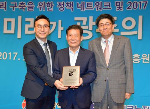 À±ÀåÇö ±¤ÁÖ±¤¿ª½ÃÀåÀÌ 26ÀÏ ¿ÀÈÄ ºÏ±¸ ±¤ÁÖ°úÇбâ¼úÁøÈï¿ø ´ëȸÀǽǿ¡¼ ¿¸° '±¤ÁÖ±â¾÷ ¼ºÀå»ç´Ù¸® ±¸ÃàÀ» À§ÇÑ Á¤Ã¥ ³×Æ®¿öÅ© ¹× 2017 ¸íǰ°¼Ò±â¾÷ ÀÎÁõ¼ ¼ö¿©½Ä'¿¡ Âü¼®ÇØ ³²ÀçÀÏ ±¤ÁÖû³ââ¾÷Áö¿ø¼¾ÅÍ ÀÔÁÖ½ºÅ¸Æ®¾÷ ÀÚÄ¡À§¿øÈ¸ÀåÀ¸·Î ºÎÅÍ °¨»çÆÐ ¹ÞÀº µÚ ±â³äÃÔ¿µÀ» Çϰí ÀÖ´Ù