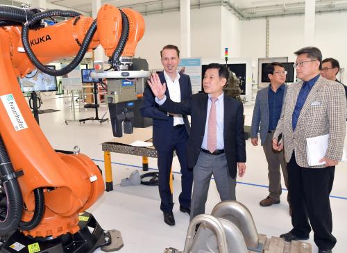 À±ÀåÇö ±¤ÁÖ±¤¿ª½ÃÀåÀº Áö³ 9ÀÏ(ÇöÁö½Ã°£) µ¶ÀÏ Á¤ºÎ°¡ ÀÚµ¿Â÷ »ê¾÷ 150Áֳ⿡ ¸ÂÃç ÃßÁøÇϰí ÀÖ´Â Çù¾÷ ÇÁ·ÎÁ§Æ® '¾Æ·¹³ª 2036' ÇöÀåÀ» ¹æ¹®ÇØ 4Â÷ »ê¾÷Çõ¸í ½Ã´ëÀÇ ºñÀü°ú Àü·«À» °øÀ¯Çß´Ù.