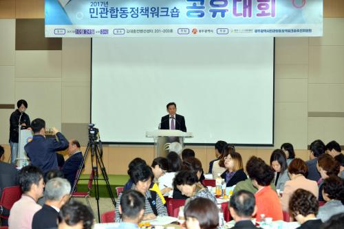 À±ÀåÇö ±¤ÁÖ±¤¿ª½ÃÀåÀº 24ÀÏ ¿ÀÈÄ ±è´ëÁßÄÁº¥¼Ç¼¾ÅÍ¿¡¼ ¿¸° 2017 ¹Î°üÇÕµ¿ ¿öÅ©¼ó °øÀ¯´ëȸ¿¡ Âü¼®ÇØ °Ý·Á»ç¸¦ ÇÑ ÈÄ Áö¿ª¹ßÀüÀ» À§ÇÑ Á¤Ã¥ Á¦¾È»çÇ×À» °æÃ»Çß´Ù.