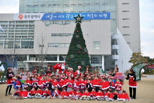 À±ÀåÇö ±¤ÁÖ±¤¿ª½ÃÀåÀÌ 6ÀÏ ¿ÀÈÄ ½Ãû ¾Õ Àܵð±¤Àå¿¡¼ ¿¸° 'Å©¸®½º¸¶½º Æ®¸® Á¡µî½Ä'¿¡ Âü¼®ÇØ ½Ãû¾î¸°ÀÌÁý ¿ø¾Æµé°ú ÇÔ²² ij·Ñ¼ÛÀ» ºÎ¸£°í ÀÖ´Ù. Å©¸®½º¸¶½º Æ®¸®¸¦ ºñ·ÔÇØ ¼Ò³ª¹«LEDÀå½Ä, ¼Ò¿øÀÇ ÅͳÎÀº ³»³â 1¿ù10ÀϱîÁö ¸ÅÀÏ °¡µ¿µÉ ¿¹Á¤ÀÌ´Ù.