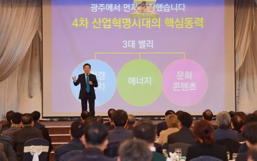 À±ÀåÇö ±¤ÁÖ±¤¿ª½ÃÀåÀÌ 5ÀÏ ¿ÀÀü µ¿±¸ ½Å¾çÆÄũȣÅÚ ´ë¿¬È¸Àå¿¡¼ ±¤Áְ濵ÀÚÃÑÇùȸ ÁÖ°üÀ¸·Î ¿¸° '½Å³âÀλçȸ ¹× ±Ý¿äÁ¶ÂùÆ÷·³'¿¡ Âü¼®ÇØ È¸¿øµé°ú Àλ縦 Çϰí ÀÖ´Ù.