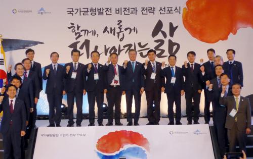 1ÀÏ ¿ÀÈÄ ¼¼Á¾½Ã Á¤ºÎ¼¼Á¾ÄÁº¥¼Ç¼¾ÅÍ¿¡¼ ¿¸° '±¹°¡±ÕÇü¹ßÀü ºñÀü ¼±Æ÷½Ä'¿¡¼ ¹®ÀçÀÎ ´ëÅë·ÉÀ» ºñ·ÔÇÑ À±ÀåÇö ±¤ÁÖ±¤¿ª½ÃÀå, 17°³ ½Ã‧µµÁö»ç, °ü°è ºÎó Àå°ü, ´ëÅë·É Á÷¼Ó ÀÚ¹®À§¿øÈ¸ À§¿ø µî Âü¼®ÀÚµéÀÌ ºñÀü ¼±Æ÷½Ä Æ÷ÆÛ¸Õ½º¸¦ Çϰí ÀÖ´Ù.