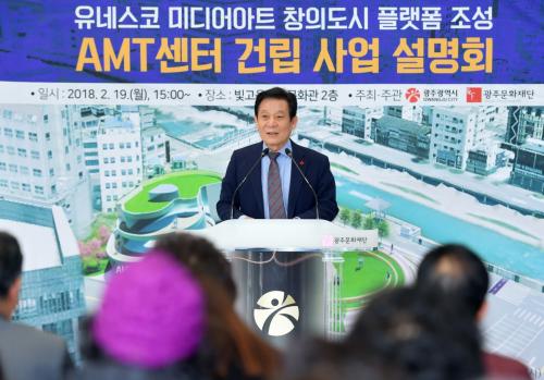 À±ÀåÇö ±¤ÁÖ±¤¿ª½ÃÀåÀÌ 19ÀÏ ¿ÀÈÄ ³²±¸ ±¤ÁÖ¹®ÈÀç´Ü¿¡¼ ¿¸° ¹Ìµð¾î¾ÆÆ® Ç÷§Æû °Ç¸³À» À§ÇÑ ½Ã¹Î, Àü¹®°¡ ´ë»ó AMT(Art & Media Technology)¼¾ÅÍ °Ç¸³ »ç¾÷¼³¸íȸ¿¡ Âü¼®ÇØ Àλ縻À» Çϰí ÀÖ´Ù.