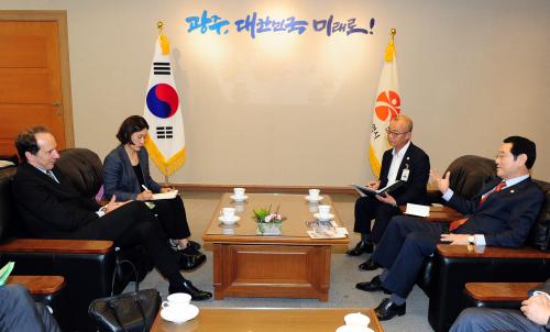 À̿뼷 ±¤ÁÖ±¤¿ª½ÃÀåÀº 5ÀÏ ¿ÀÈÄ ½Ãû Á¢°ß½Ç¿¡¼ ÆÄºñ¾Ó Æä³í ÇÁ¶û½º ´ë»ç¿Í ¸é´ãÀ» °®°í ¹®È¿¹¼ú, ´ëÇб³À°, Áö¼Ó°¡´É¹ßÀü µî ºÐ¾ß¿¡ ´ëÇÑ Çù·Â¹æ¾ÈÀ» ³íÀÇÇß´Ù.