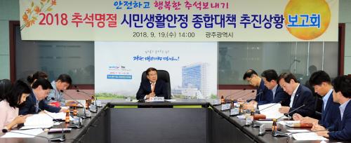 Á¤Á¾Á¦ ±¤ÁÖ±¤¿ª½Ã ÇàÁ¤ºÎ½ÃÀåÀÌ 19ÀÏ ¿ÀÈÄ 2½Ã ½Ãû 17Ãþ Àç³¾ÈÀü´ëåȸÀǽǿ¡¼ ¿¸° ¡®Ãß¼® ¸íÀý ½Ã¹Î»ýȰ Á¾ÇÕ´ëÃ¥ ÃßÁø»óȲ º¸°íȸ¡¯¸¦ ÁÖÀçÇÏ°í ¼Ò¿Ü°èÃþÁö¿ø µî 10°³ ºÐ¾ß ÃßÁø»óȲÀ» Á¡°ËÇß´Ù.