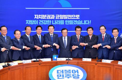 À̿뼷 ±¤ÁÖ±¤¿ª½ÃÀåÀÌ 11ÀÏ ¿ÀÀü ¼¿ï ¿©Àǵµ ±¹È¸º»°ü ´õºÒ¾î¹ÎÁÖ´ç ´ç ´ëÇ¥½Ç¿¡¼ ¿¸° '¹ÎÁÖ´ç ´ëÇ¥-½Ã¡¤µµÁö»ç °£´ãȸ'¿¡ Âü¼®ÇØ ÀÌÇØÂù ´ëÇ¥, ±èµÎ°ü ÂüÁÁÀºÁö¹æÁ¤ºÎÀ§¿øÀå, ½Ã¡¤µµÁö»ç µî°ú ¼ÕÀ» Àâ°í Æ÷Á ÃëÇϰí ÀÖ´Ù.