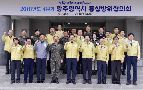 À̿뼷 ±¤ÁÖ±¤¿ª½ÃÀåÀÌ 21ÀÏ ¿ÀÈÄ ºÏ±¸ Á¦31º¸º´»ç´Ü ¿Âºû´©¸®È¦¿¡¼ ¿¸° '2018³âµµ 4ºÐ±â ÅëÇÕ¹æÀ§ÇùÀÇȸ'¿¡ Âü¼®ÇØ ±èµ¿Âù ±¤ÁÖ½ÃÀÇȸ ÀÇÀå, ¼Ò¿µ¹Î 31»ç´ÜÀå, ±è±ÔÇö ±¤ÁÖ°æÂûûÀå µî Âü¼®ÀÚµé°ú ±â³äÃÔ¿µÀ» Çϰí ÀÖ´Ù.