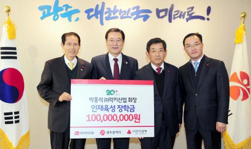 À̿뼷 ±¤ÁÖ±¤¿ª½ÃÀåÀÌ 26ÀÏ ¿ÀÈÄ ½Ãû 3Ãþ Á¢°ß½Ç¿¡¼ ¡®ºû°íÀ» ÀåÇÐÀç´Ü ±âŹ±Ý Àü´Þ½Ä¡¯¿¡ Âü¼®ÇØ ¹ÚÈï¼® ·°Å°»ê¾÷ ȸÀåÀ¸·ÎºÎÅÍ ÀÎÀçÀ°¼º ÀåÇÐ±Ý 1¾ï¿øÀ» Àü´Þ ¹Þ°í ÀÖ´Ù. ¿ÞÂʺÎÅÍ ¹ÚÈï¼® ·°Å°»ê¾÷ ȸÀå, À̿뼷 ±¤ÁÖ±¤¿ª½ÃÀå, ÇÑ»ó¿ø ±¤ÁÖ»çȸº¹Áö°øµ¿¸ð±ÝȸÀå.