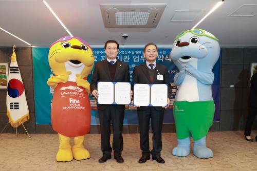 10ÀÏ ¿ÀÀü ACC µðÀÚÀÎÈ£ÅÚ¿¡¼ À̿뼷 2019±¤ÁÖ¼¼°è¼ö¿µ¼±¼ö±Ç´ëȸ Á¶Á÷À§¿øÀå(±¤ÁÖ±¤¿ª½ÃÀå)°ú ÀÌ»ï¿ë Àü³²´ë º´¿øÀåÀÌ 2019±¤ÁÖ¼¼°è¼ö¿µ¼±¼ö±Ç´ëȸ ÀÇ·áÁö¿ø ±â°ü ¾÷¹« Çù¾àÀ» ü°áÇϰí ÀÖ´Ù.