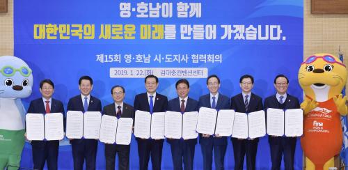 À̿뼷 ±¤ÁÖ±¤¿ª½ÃÀå°ú ¿µ¡¤È£³² ½ÃµµÁö»çµéÀÌ 22ÀÏ ¿ÀÀü 'Á¦15ȸ ¿µ¡¤È£³² ½ÃµµÁö»ç Çù·ÂȸÀÇ'¿¡ Âü¼®
