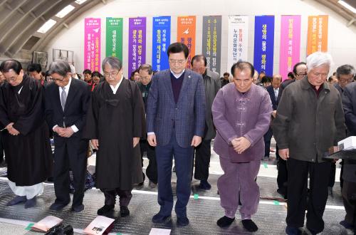 À̿뼷 ±¤¿ª½ÃÀåÀÌ ¼³ ¿¬ÈÞ ¸¶Áö¸· ³¯ÀÎ 6ÀÏ ¿ÀÈÄ µ¿±¸ ±Ý³²·Î ±¤ÁÖYMCA 2Ãþ ¹«Áø°ü¿¡¼ ¿¸° '2019 ¹ÎÁÖ°¡Á· ÇÕµ¿ ¼¼¹è'¿¡ Âü¼®ÇØ ½Ã¹Î»çȸ´Üü ´ëÇ¥, Áö¿ª ¿ø·Î µî°ú ¹¬³äÀ» Çϰí ÀÖ´Ù.