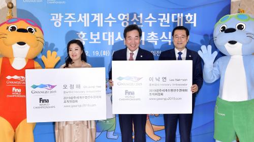 19ÀÏ ¿ÀÈÄ ¼¿ï Á¤ºÎÁ¾ÇÕû»ç¿¡¼ ¿¸° 2019±¤ÁÖ¼¼°è¼ö¿µ¼±¼ö±Ç´ëȸ È«º¸´ë»ç À§Ã˽Ŀ¡¼ À̳«¿¬ ±¹¹«ÃѸ®(Á¤ºÎ´ëÇ¥)¿Í ±¹¾ÇÀÎ ¿ÀÁ¤ÇØ(¹Î°£´ëÇ¥) ¾¾°¡ È«º¸´ë»ç·Î À§ÃËµÈ µÚ À̿뼷 ±¤ÁÖ¼ö¿µ´ëȸ Á¶Á÷À§¿øÀå(±¤ÁÖ±¤¿ª½ÃÀå)°ú ÇÔ²² ±â³äÃÔ¿µÀ» Çϰí ÀÖ´Ù.