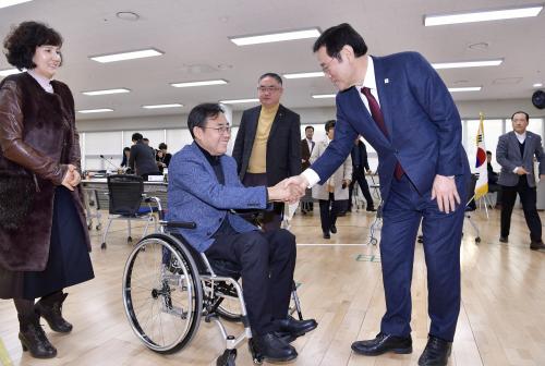 À̿뼷 ±¤ÁÖ±¤¿ª½ÃÀåÀÌ 20ÀÏ ¿ÀÈÄ ¼±¸ Àå¾ÖÀÎ ±¹¹ÎüÀ°¼¾ÅÍ 3Ãþ ´Ù¸ñÀû½Ç¿¡¼ ¿¸° ±¤Áֽà Àå¾ÖÀÎüÀ°È¸ Á¦18Â÷ ÀÌ»çȸ¿¡ Âü¼®ÇØ È¸ÀǸ¦ ¸¶Ä£ µÚ ÀÌ»çÁøµé°ú Àλ縦 ³ª´©°í ÀÖ´Ù.