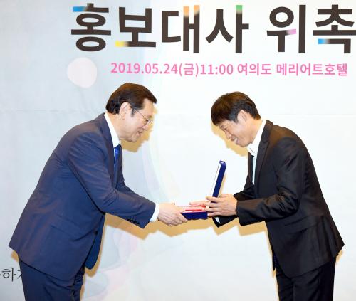 À̿뼷 ±¤ÁÖ±¤¿ª½ÃÀåÀÌ 24ÀÏ ¿ÀÀü ¼¿ï ¿©Àǵµ ¸Þ¸®¾îÆ® È£ÅÚ¿¡¼ ¿¸° ¡®2019±¤ÁÖµðÀÚÀκñ¿£³¯·¹ È«º¸´ë»ç À§Ã˽ġ¯¿¡ Âü¼®ÇØ ¿µÈ¹è¿ì À¯ÇØÁø ¾¾¿¡°Ô È«º¸´ë»ç À§ÃËÆÐ¸¦ ¼ö¿©Çϰí ÀÖ´Ù.