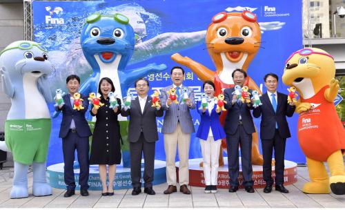 À̿뼷 ±¤ÁÖ±¤¿ª½ÃÀåÀÌ 10ÀÏ ¿ÀÈÄ ºÎ»ê±¤¿ª½Ãû ½Ã¹Î±¤Àå¿¡¼ ¿¸° 2019 ±¤ÁÖ¼¼°è¼ö¿µ¼±¼ö±Ç´ëȸ D-30 ±â³ä ¸¶½ºÄÚÆ® ¼ö¸®¡¤´ÞÀÌ Á¶Çü¹° Á¦¸·½Ä¿¡ Âü¼®ÇØ ¿À°Åµ· ºÎ»ê±¤¿ª½ÃÀå, ¹ÚÀοµ ºÎ»ê½ÃÀÇȸ ÀÇÀå, Àӹ̶õ ±¤ÁÖ½ÃÀÇȸ ºÎÀÇÀå µî ³»ºóµé°ú ´ëȸ ¼º°ø°³ÃÖ¸¦ ±â¿øÇÏ¸ç ±¸È£¸¦ ¿ÜÄ¡°í ÀÖ´Ù. ¿ÞÂÊ µÎ¹øÂ°ºÎÅÍ ¹ÚÀοµ ºÎ»ê½ÃÀÇȸ ÀÇÀå, ¿À°Åµ· ºÎ»ê½ÃÀå, À̿뼷 ±¤ÁÖ½ÃÀå, Àӹ̶õ ±¤ÁÖ½ÃÀÇȸ ºÎÀÇÀå.