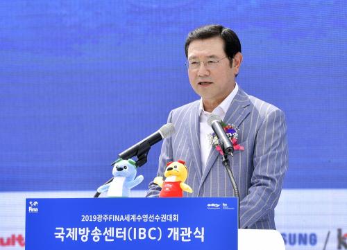 À̿뼷 ±¤ÁÖ±¤¿ª½ÃÀå, ¼¼°è¼ö¿µ¼±¼ö±Ç´ëȸ ±¹Á¦¹æ¼Û¼¾ÅÍ(IBC) °³°ü½Ä Âü¼®