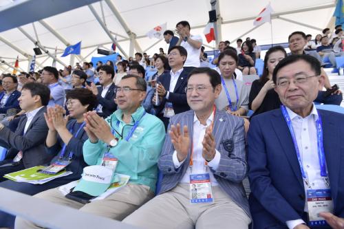 À̿뼷 2019±¤ÁÖ¼¼°è¼ö¿µ¼±¼ö±Ç´ëȸ Á¶Á÷À§¿øÀåÀÌ 16ÀÏ ¿ÀÀü ±¤»ê±¸ ³²ºÎ´ë ¼ö±¸°æ±âÀå¿¡¼ ¿¸° 2019 ±¤ÁÖ¼¼°è¼ö¿µ¼±¼ö±Ç´ëȸ ¿©ÀÚ¼ö±¸ ij³ª´Ù-Çë°¡¸®ÀÇ °æ±â¸¦ ½Ãû °£ºÎ°ø¹«¿øµé°ú °üÀüÇϰí ÀÖ´Ù.