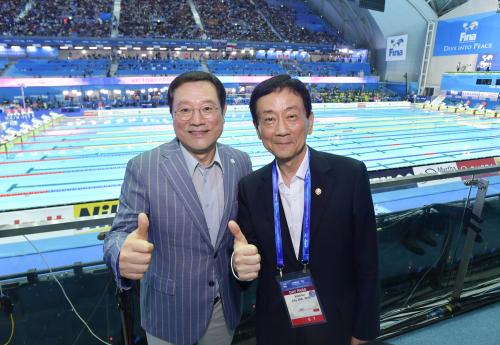 À̿뼷 ±¤ÁÖ¼¼°è¼ö¿µ¼±¼ö±Ç´ëȸ Á¶Á÷À§¿øÀå °â ±¤ÁÖ±¤¿ª½ÃÀå°ú Áø¿µ ÇàÁ¤¾ÈÀüºÎ Àå°üÀÌ 25ÀÏ ¿ÀÈÄ ±¤»ê±¸ ³²ºÎ´ë ½Ã¸³±¹Á¦¼ö¿µÀåÀ» ¹æ¹®ÇØ 2019 ±¤ÁÖ ¼¼°è¼ö¿µ¼±¼ö±Ç´ëȸ °æ¿µ °æ±â¸¦ °üÀüÇÑ µÚ ±â³äÃÔ¿µÀ» Çϰí ÀÖ´Ù.