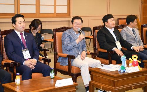 À̿뼷 ±¤ÁÖ±¤¿ª½ÃÀåÀÌ 26ÀÏ ¿ÀÀü ½Ãû 3Ãþ ºñÁî´Ï½º·ë¿¡¼ °æÁ¦¡¤»çȸºÐ¾ßÀÇ Çù·Â¹æ¾ÈÀ» ¸ð»öÇϱâ À§ÇØ ±¤Áֽø¦ ãÀº ÁßÈÀü±¹Ã»³â¿¬ÇÕȸ ´ëÇ¥´Ü°ú À̾߱⸦ ³ª´©°í ÀÖ´Ù.
