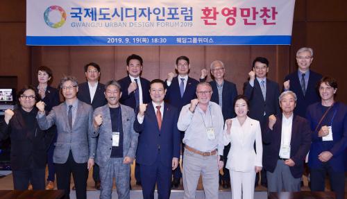 À̿뼷 ±¤ÁÖ±¤¿ª½ÃÀåÀÌ 19ÀÏ ¿ÀÈÄ ¼±¸ À§´õ½º±¤ÁÖ¿¡¼ ¿¸° 2019 ±¹Á¦µµ½ÃµðÀÚÀÎÆ÷·³ ȯ¿µ¸¸Âù¿¡ Âü¼®ÇØ ±¹³»¡¤¿Ü µµ½ÃµðÀÚÀÎ °ü°èÀÚ, °ÇÃà°¡ µî°ú ±â³äÃÔ¿µÀ» Çϰí ÀÖ´Ù.