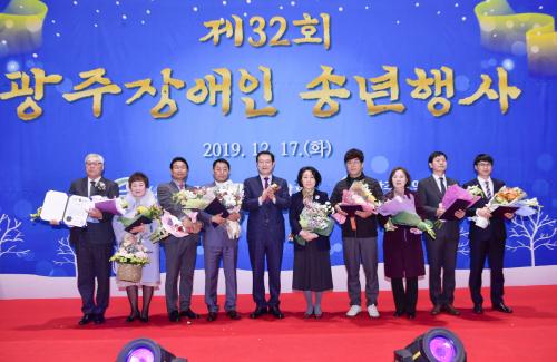 À̿뼷 ±¤ÁÖ±¤¿ª½ÃÀåÀÌ 17ÀÏ ¿ÀÀü ¼±¸ Àå¾ÖÀα¹¹ÎüÀ°¼¾ÅÍ¿¡¼ ¿¸° 'Á¦32ȸ ±¤ÁÖÀå¾ÖÀÎ ¼Û³âÇà»ç'¿¡ Âü¼®ÇØ À¯°øÀÚ¿¡°Ô ǥâÀ» ¼ö¿©ÇÑ µÚ ±â³äÃÔ¿µÀ» Çϰí ÀÖ´Ù.