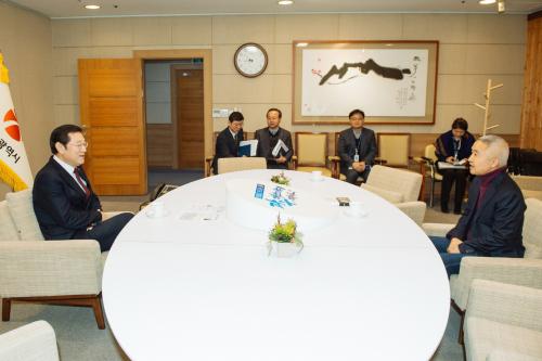 À̿뼷 ±¤ÁÖ±¤¿ª½ÃÀåÀÌ 17ÀÏ ¿ÀÀü ½Ãû Á¢°ß½Ç¿¡¼ 'Á¦15ȸ °øÁ÷ÀÚ Çõ½Å±³À°' °¿¬ÀÚ·Î ÃÊÁ¤µÈ ÃÖÁø¼® ¼°´ë öÇаú ¸í¿¹±³¼ö¿Í Â÷´ãÀ» ³ª´©°í ÀÖ´Ù