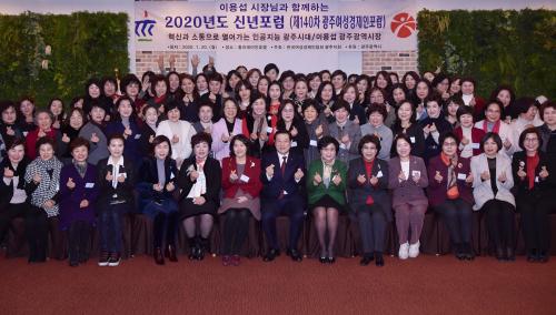 À̿뼷 ±¤ÁÖ±¤¿ª½ÃÀåÀÌ 20ÀÏ ¿ÀÈÄ ¼±¸ Ȧ¸®µ¥ÀÌÀΠȣÅÚ¿¡¼ ¿¸° 'Á¦140ȸ ±¤ÁÖ¿©¼º°æÁ¦ÀÎÆ÷·³' ½Å³â Ưº°°¿¬¿¡ Âü¼®ÇØ 'Çõ½Å°ú ¼ÒÅëÀ¸·Î ¿¾î°¡´Â ÀΰøÁö´É ±¤Áֽôë'¸¦ ÁÖÁ¦·Î °ÀǸ¦ ¸¶Ä£ µÚ ¹è¹®ÀÚ È¸Àå ¹× È¸¿øµé°ú ±â³äÃÔ¿µÀ» Çϰí ÀÖ´Ù.