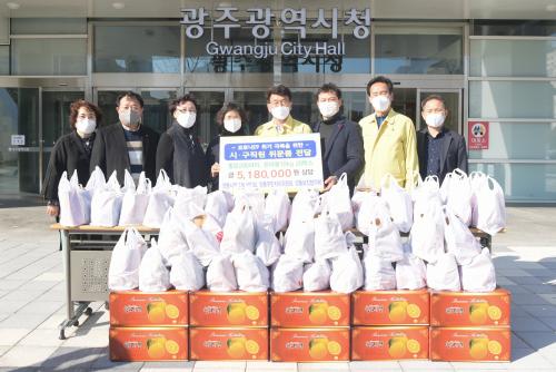 ±èÁ¾È¿ ±¤ÁÖ±¤¿ª½Ã ÇàÁ¤ºÎ½ÃÀåÀÌ 5ÀÏ ¿ÀÈÄ ½Ãû ÇàÁ¤µ¿ ¾Õ¿¡¼ ¼ÕÁßÈ£ ¾çµ¿½ÃÀå»óÀο¬ÇÕȸ¿Í ÇѺ¹ÀÚ ¾çµ¿ÁÖ¹ÎÀÚÄ¡À§¿øÈ¸ À§¿øÀåÀ¸·ÎºÎÅÍ Äڷγª19 ´ëÀÀ °ü°è ºÎ¼ °Ý·Á¹°Ç°À» Àü´Þ ¹ÞÀº µÚ ±â³äÃÔ¿µÀ» Çϰí ÀÖ´Ù.