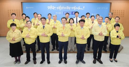 À̿뼷 ±¤ÁÖ±¤¿ª½ÃÀå°ú ½Ã °£ºÎµéÀÌ Äڷγª19 ±¹³» È®ÁøÀÚ ¹ß»ý ÈÄ 100ÀÏÀÎ 28ÀÏ ¿ÀÀü ½Ãû 5Ãþ ºê¸®Çη뿡¼ Äڷγª19 ´ëÀÀ¿¡ Àû±ØÀûÀ¸·Î ÇùÁ¶ÇØ ÁØ ½Ã¹Îµé°ú ÀÇ·áÁø¿¡°Ô °¨»çÇÑ ¸¶À½À» ´ã¾Æ ¼ö¾î·Î ¡®Á¸°æÇÕ´Ï´Ù¡¯¸¦ Ç¥ÇöÇϰí ÀÖ´Ù.