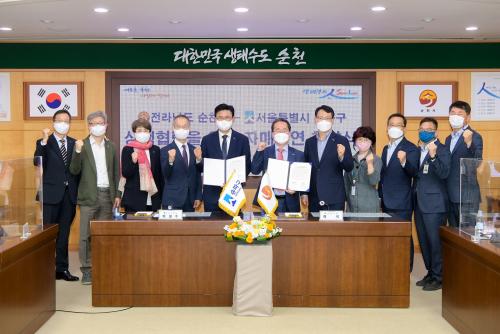 À̳¯ Çù¾à½ÄÀº ¼øÃµ½Ãû ¼ÒȸÀǽǿ¡¼ Çã¼® ¼øÃµ½ÃÀå°ú ¹Ú¼º¼ö ¼ÛÆÄ±¸Ã»Àå µî 20¿©¸íÀÌ Âü¼®ÇÑ °¡¿îµ¥ ÇàÁ¤¡¤°æÁ¦¡¤¹®È¡¤°ü±¤ µî ´Ù¾çÇÑ ºÐ¾ß¿¡¼ ±³·ù¿Í Çù·ÂÀ» ÃßÁøÇϰí, ±³·ùÇù·Â Ȱ¼ºÈ¸¦ À§ÇÑ °øµ¿ °ü½É»çÇ×À» Áö¼ÓÀûÀ¸·Î ¹ß±¼ÇØ ³ª°¡±â·Î Çß´Ù.