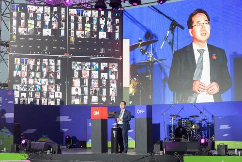 °³¸·½ÄÀº Çã¼® ½ÃÀåÀÇ °³¸·¼±¾ðÀ» ½ÃÀÛÀ¸·Î ±â¼ö´Ü ÀÔÀå, ȯ¿µ°ø¿¬ ¡®·ç¹ÌÀÇ ²Þ¡¯°ú ÁÖÁ¦°ø¿¬ ¡®ÇÔ²² ³ë·¡ÇØ¡¯°¡ ¿¬ÃâµÇ¾ú°í, °³¸·Çà»ç´Â 300°³ÀÇ ¸ÖƼȸéÀ» ÅëÇØ ¿Â¶óÀÎ ½Ç½Ã°£À¸·Î ¿¬°áµÇ¾î Àü±¹ÀÇ ÃàÁ¦ Âü¿©ÀÚ¿Í ½Ö¹æÇâÀ¸·Î ¼ÒÅëÇÏ¸ç ¿î¿µµÇ¾ú´Ù.