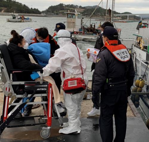 ½Å°í¸¦ Á¢¼öÇÑ ÇØ°æÀº Áï½Ã °æºñÁ¤À» ±ÞÆÄÇØ ½Å¾È ºñ±Ýµµ ¼ö´ë¼±ÂøÀå¿¡¼ B¾¾¿Í º¸È£ÀÚ¸¦ ž½Â½ÃŲ ÈÄ ¿ø°ÝÀÀ±ÞÀÇ·á½Ã½ºÅÛÀ» ÀÌ¿ëÇØ º´¿ø ÀÇ·áÁø°ú ÀÓ»êºÎÀÇ »óŸ¦ ¼ö½Ã·Î °øÀ¯ÇÏ¸ç ±ä±Þ À̼ÛÀ» ½ÃÀÛÇß´Ù.