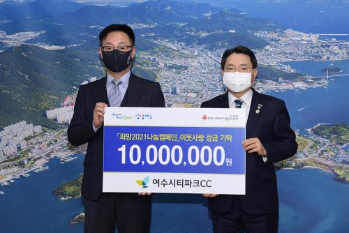 ¿©¼ö½ÃƼÆÄÅ©CC, ÀÌ¿ô»ç¶û ¼º±Ý 1,000¸¸ ¿ø ¿©¼ö½Ã¿¡ ±âŹ